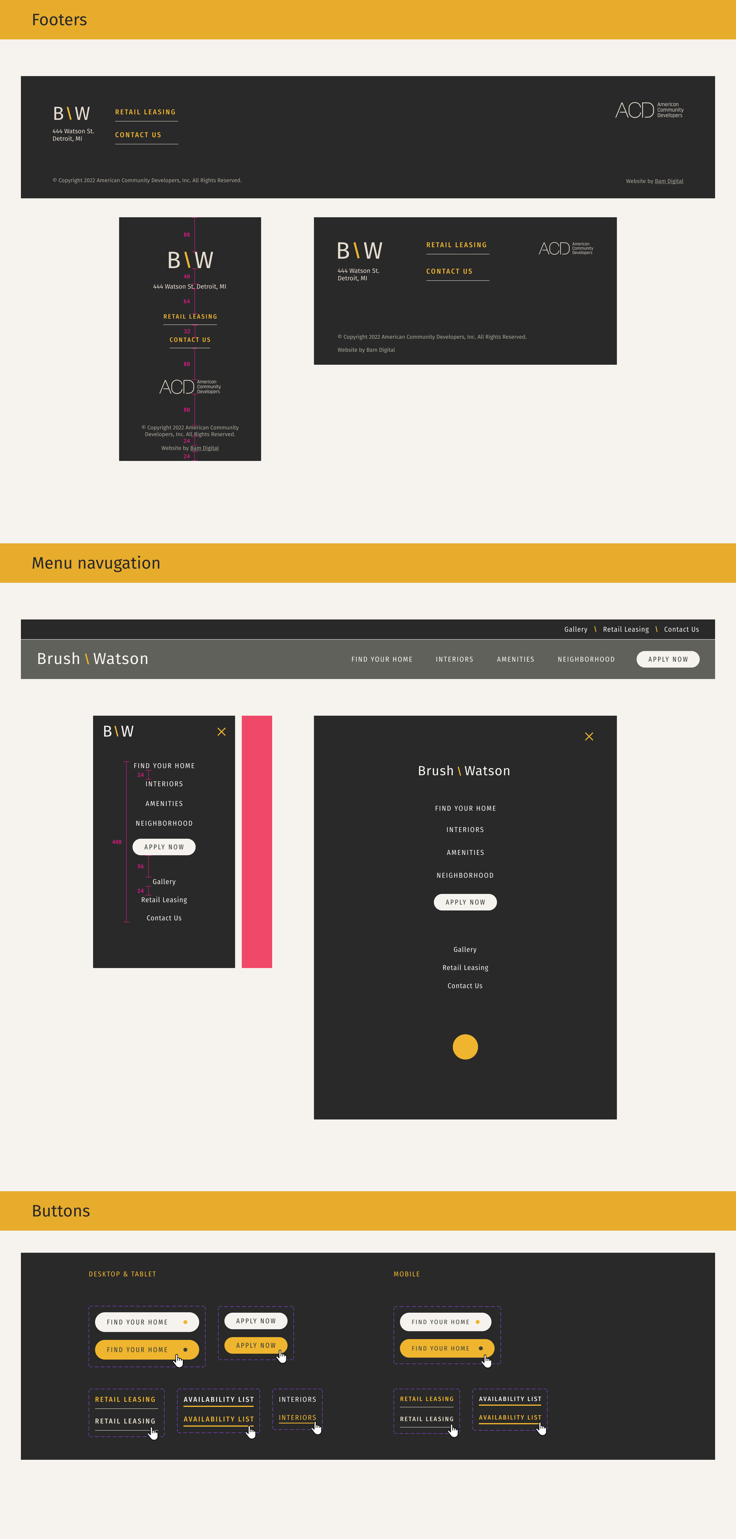 Once the production work was complete and all assets were created, I designed the first version of the website to present to the Brush\Watson client.